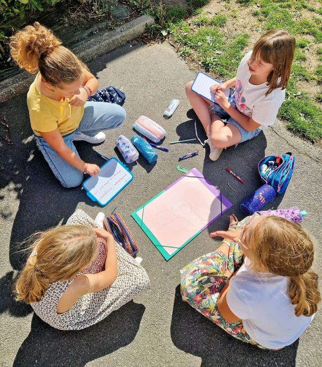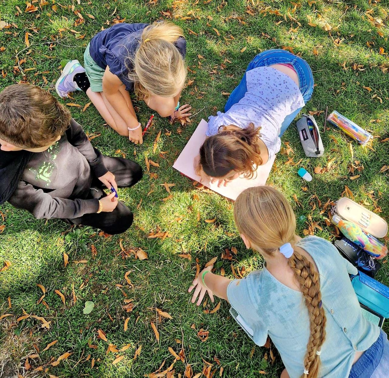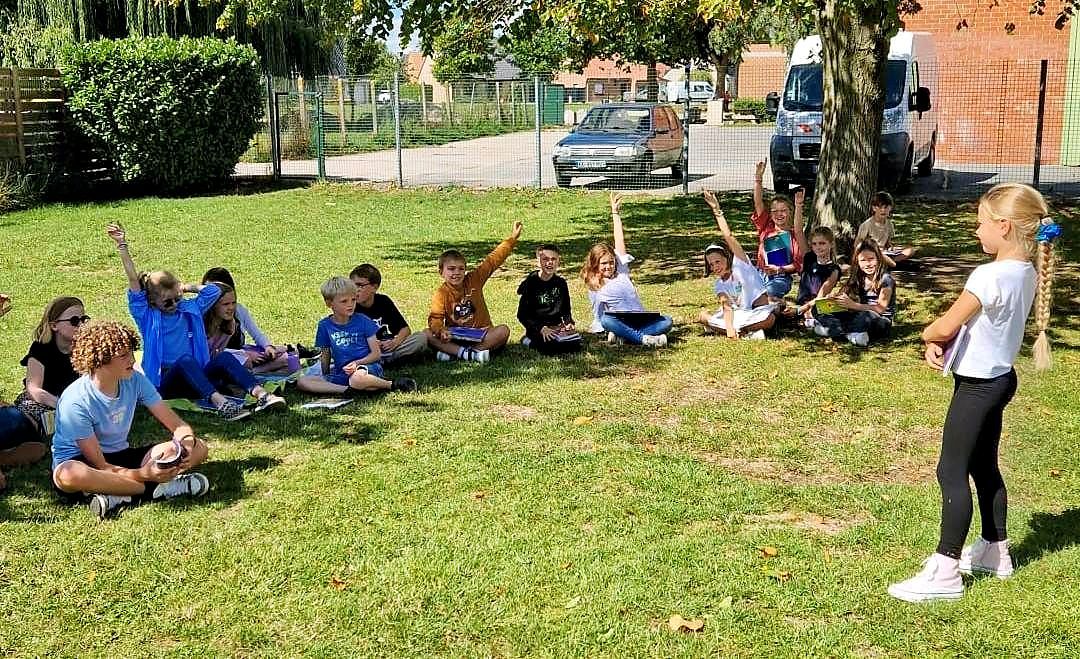 Les CM ont profité des beaux jours du début septembre pour faire classe dehors. Les élèves étaient très heureux d'apprendre autrement, au contact de la nature...