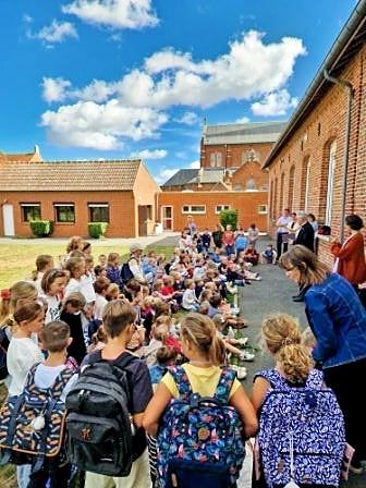 Lundi 1er septembre, c’est la rentrée. Après le traditionnel "pot" et la transmission d’un cadeau offert à chaque classe en lien avec le projet pastoral, l’abbé Nicolas est venu bénir les enfants et l’équipe. Que cette année soit riche en échanges, en découvertes et en moments de bonheur tous ensemble ! Toute l’équipe vous souhaite une belle rentrée ☺