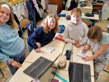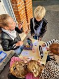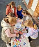 Suite à la visite du pré-verger, les CM se sont intéressés à la pomme. Ils s'agissait de l'explorer avec leurs cinq sens, découvrir son trajet dans le système digestif, retrouver des expressions avec le mot "pomme", fabriquer une compote, découvrir les amis et les ennemis du pommier et réaliser une œuvre éphémère.